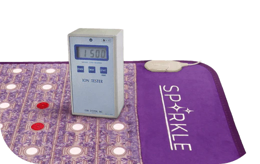 Your Sparkle Mat will heat pounds of amethyst and tourmaline crystals to create over 1,500 negative ions per square inch (see comparison chart) to help you achieve the “benefits” of negative ions and mitigate any ill-effects of “pos-ion poisoning” to your body.