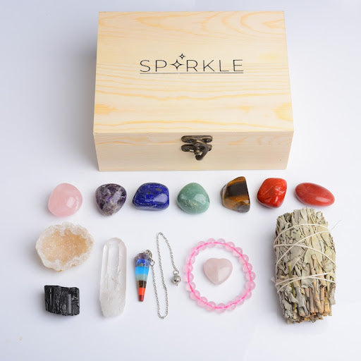 Our kits provide all the essentials to truly dive into crystal healing. With an array of stones, shapes, and natural elements, this crystal kit gives you the power to master your own holistic wellbeing.