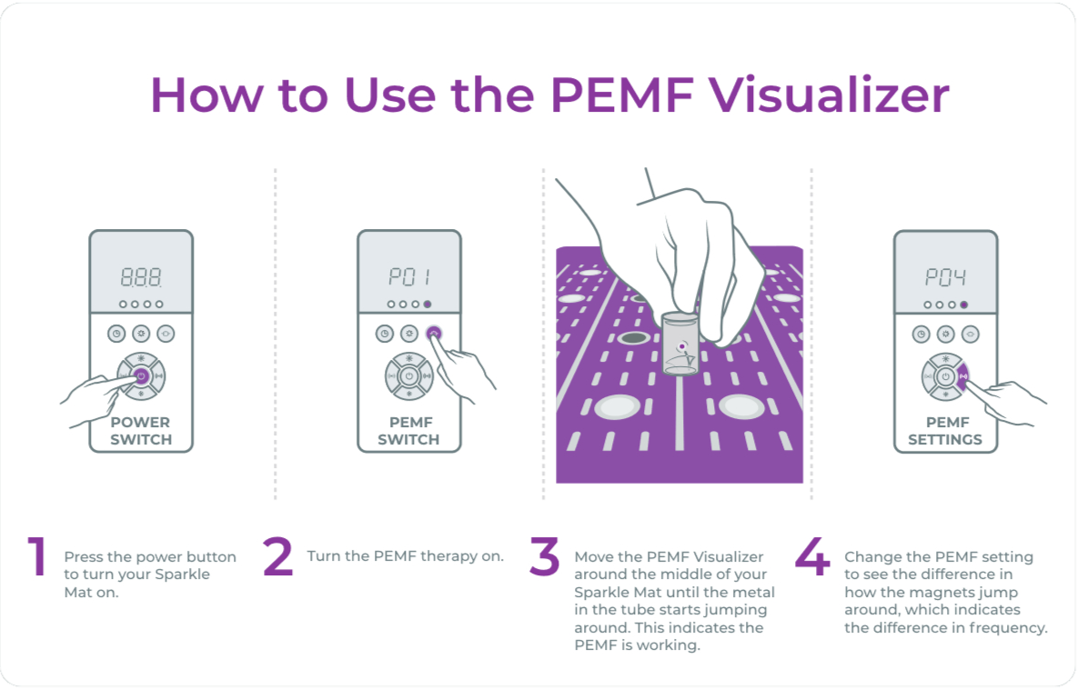It's really fun to show your friends, family, and clients a visual of how energy medicine works! Plus, aside from actually feeling the shift in your own body, seeing the PEMF Visualizer at work reinforces the healing benefits of your Sparkle Mat.