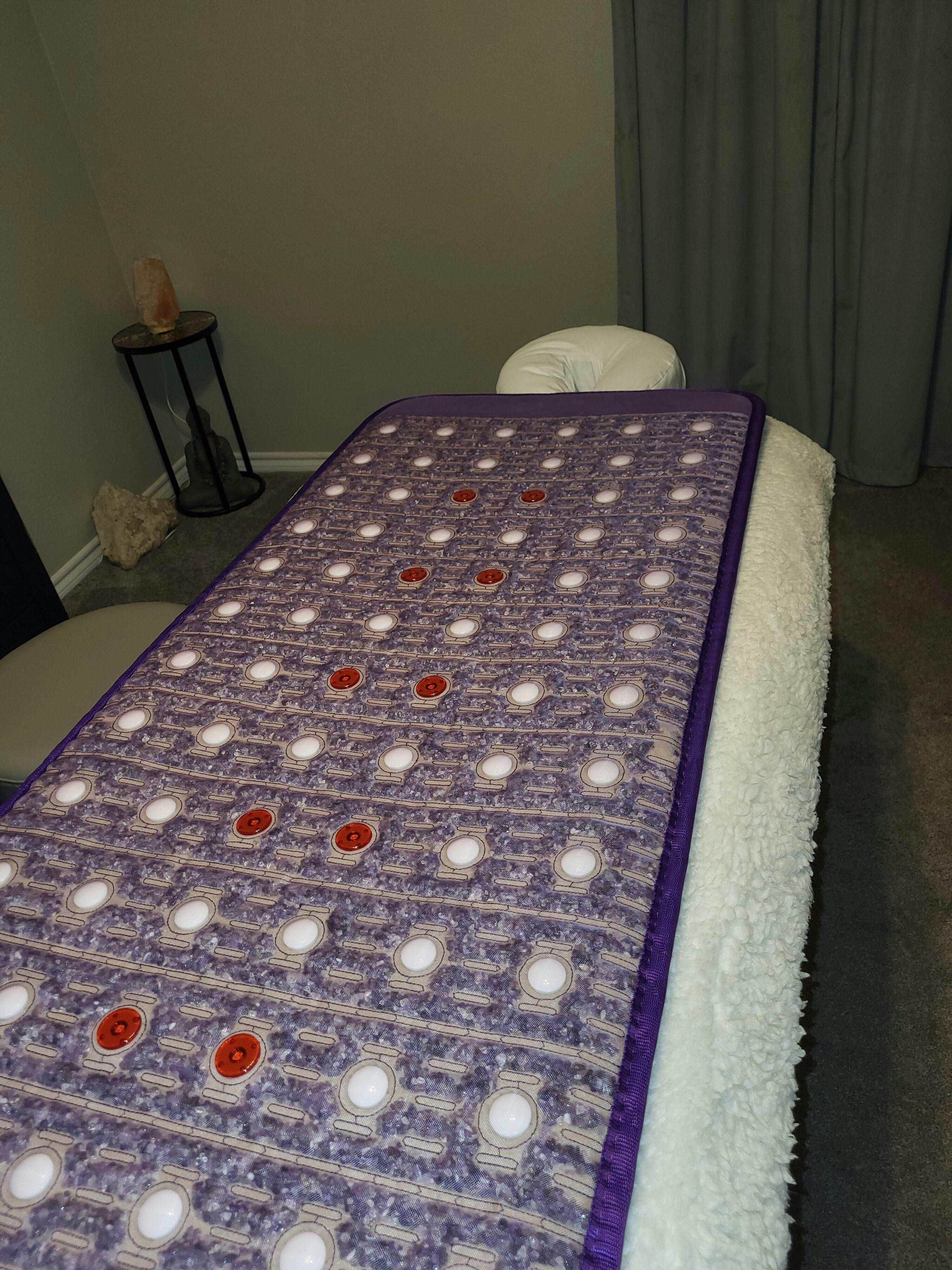We first got to experience the benefits of this mat during a session at a small business in Green River Wyoming and learning more about all the benefits convinced me that we needed one at home to use daily.. it has been helping my husband greatly! I’ve started using it myself and have felt more energized.