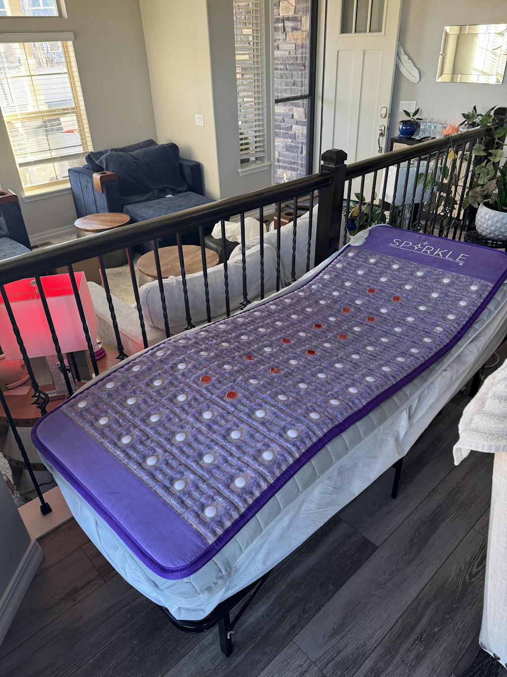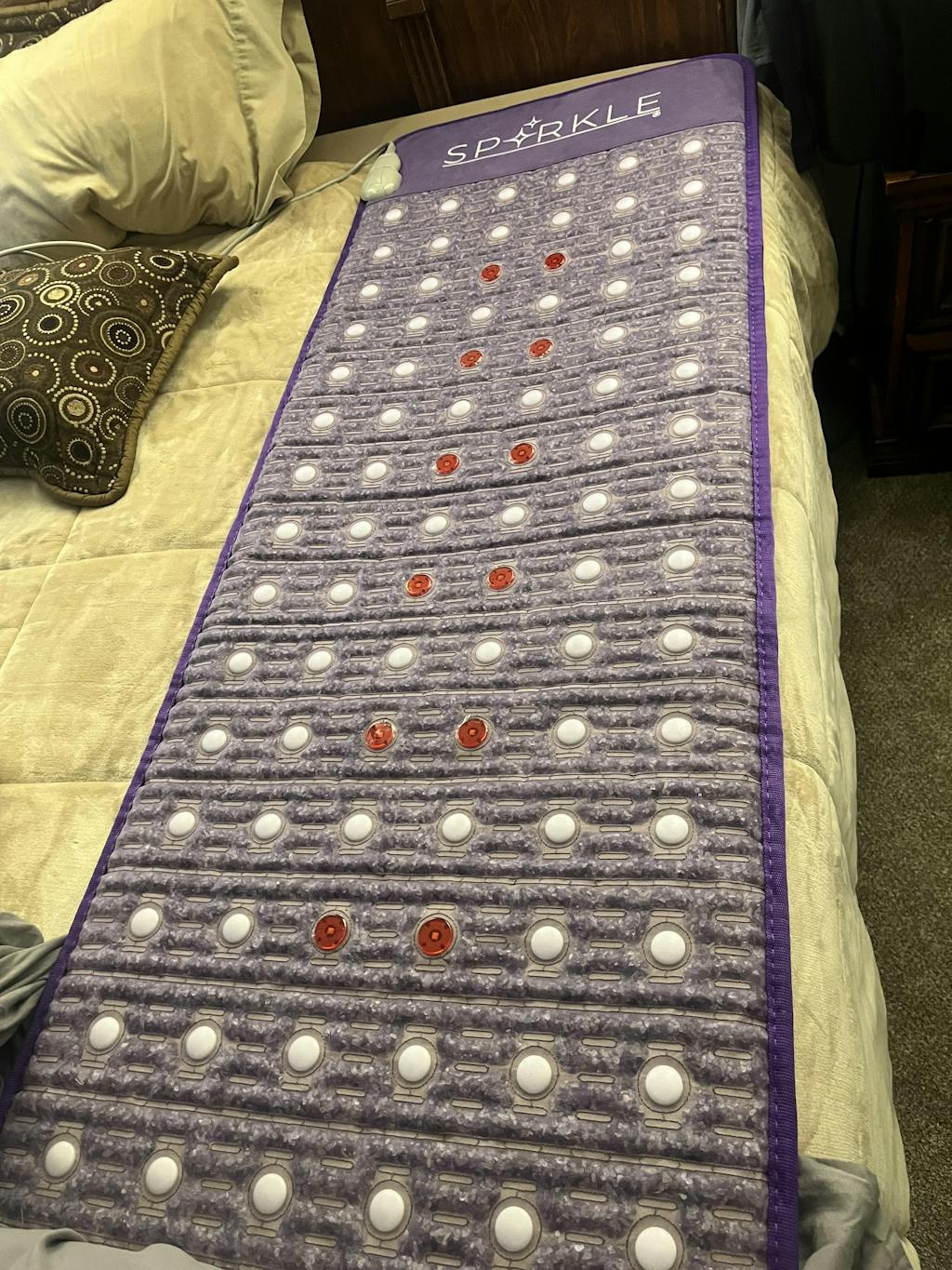 The sparkle mat came highly recommended for my low back and hip pain. It heats up fast, it is comfortable to lay or sit on. My back pain is slowly melting away. I have tried many different modalities. I can’t recommend it enough!