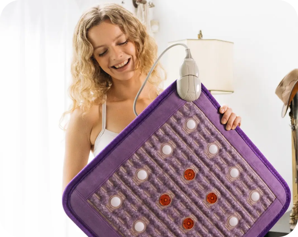 Your Sparkle Mat heats up quickly to 158°F (70°C), delivering FIR penetration ~1.5 inches into your body to aid tissue repair & boost circulation.