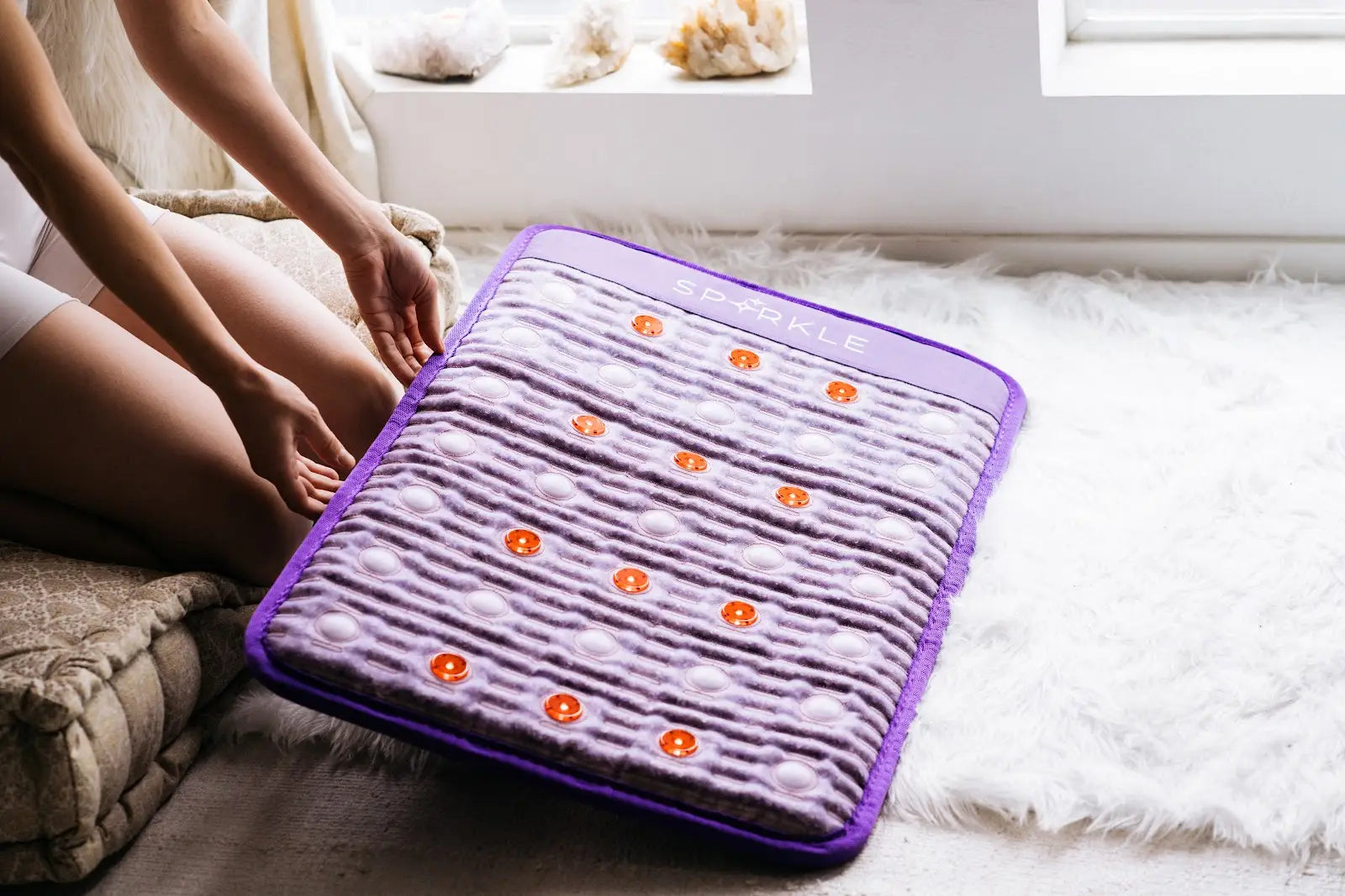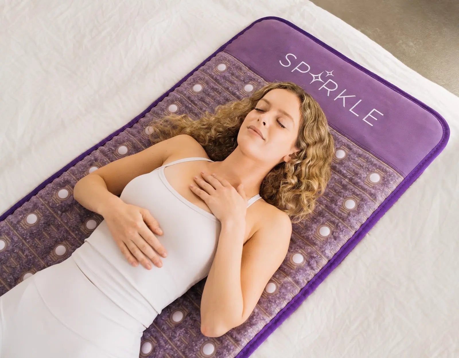 “The Sparkle Mat is a medley of five technologies, including red light, hot gemstone and negative ion therapies to reduce stress, pain, and sleeplessness.”